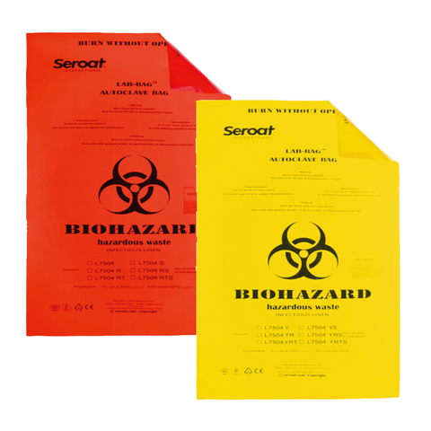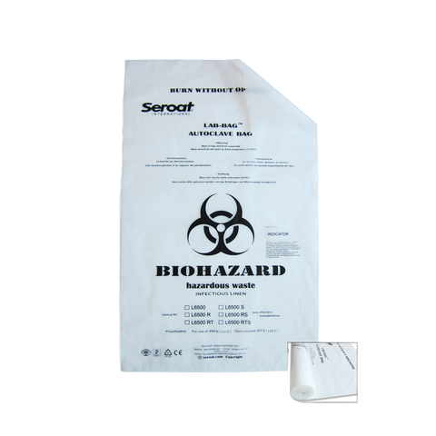 Enfeksiyöz tıbbi atık Seroat 33L 500 PS/BOX için L6504 800 * çöp torbaları mm otoklavlanabilir biyogüvenlik çantaları 500